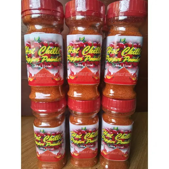 CondimentPlus Hot Chilli Pepper Powder is a fiery hot Chilli Pepper powder made from the bird Chilli Pepper specie popularly known as "Ata Ijose". It is comes in a pack of 12 jars of 80g each. Available in retail and bulk orders.