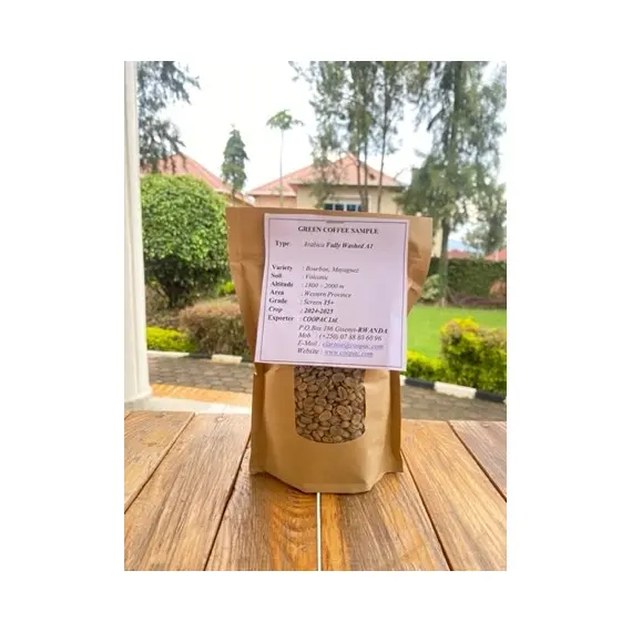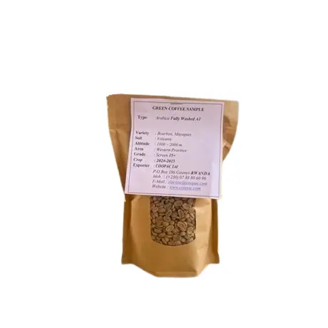 Grade & Quality: Top-tier A1 quality, fully washed to deliver a clean, smooth, and vibrant flavor profile.Fresh & Authentic: Sourced from Rwanda's renowned coffee-growing regions, ensuring premium freshness and origin authenticity.Ideal for Roasting: Perfect for home and commercial roasters seeking high-quality green coffee beans with consistent roasting performance.Eco-Friendly Production: Ethically grown and processed using sustainable practices, supporting Rwandan farmers and eco-friendly agriculture.Competitive Price: Available at just $9.7/Kg FOT Kigali, offering excellent value for premium quality coffee enthusiasts and bulk buyers.