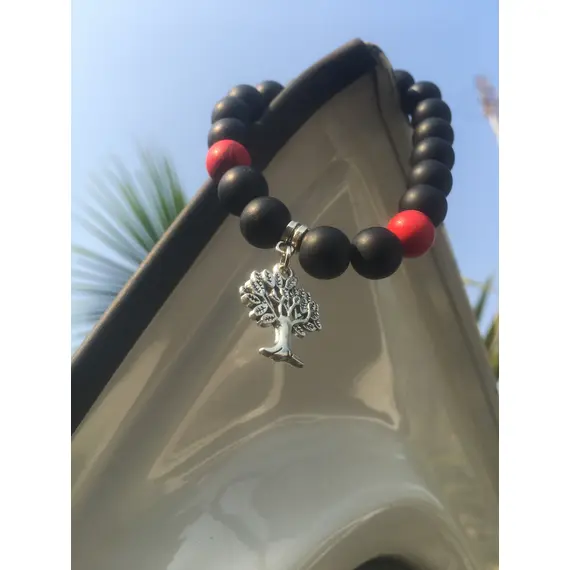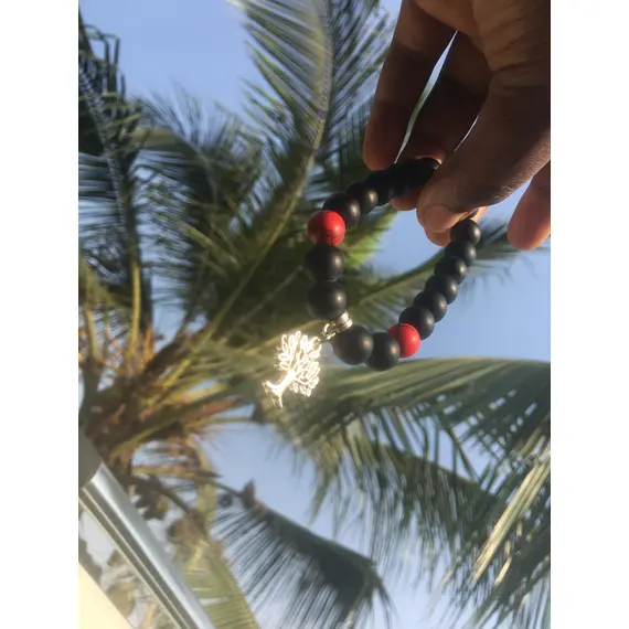 Matt Beaded Bracelets mixed with Lava Beads with a Touch of Red stone
