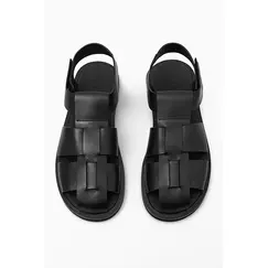 Minimalist black leather sandal with sleek straps and soft sole – stylish & comfortable. Price: 15,000 FRW (≈ $13.54 USD)