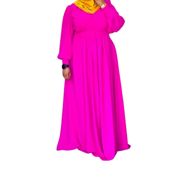 The Maxi Dress is a timeless piece that combines modesty, comfort, and elegance. Designed with a flattering empire waist and a flowy A-line silhouette, it offers effortless grace for both casual and formal occasions. The long sleeves add a touch of sophistication, while the lightweight fabric ensures comfort throughout the day. Proudly made in Rwanda, this dress is available in a vibrant fuchsia pink or tailored to your preferred custom colors, giving you the freedom to express your personal style.