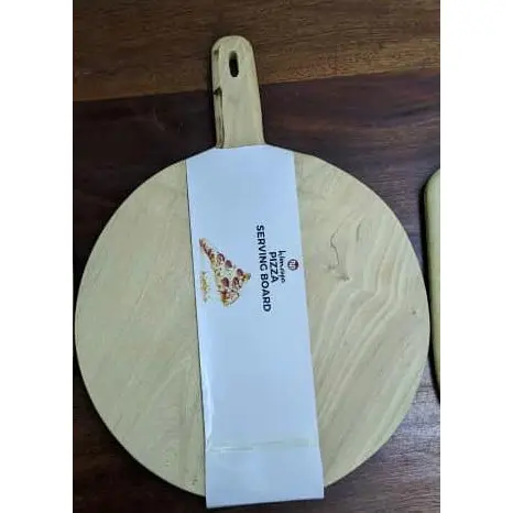 Himaya Artisan Acacia Wood Pizza Serving Board. Crafted from sustainably sourced wood, this board combines rustic charm with modern functionality. Whether you're entertaining guests, serving homemade pizza, or displaying your favorite appetizers, the smooth finish and elegant grain make it the perfect centerpiece for any occasion. Durable, beautiful, and designed to impress—this is more than a serving board; it’s a statement piece for your kitchen or dining table.