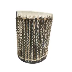 Authentic Rwandan traditional drum, handcrafted with cowhide and wood, a symbol of rhythm and heritage.