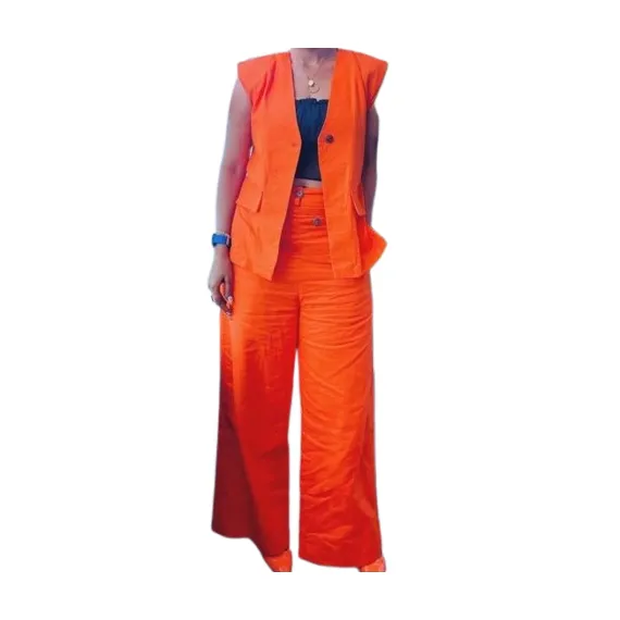 VibrantChic™ Women’s Orange Power Suit – Sleeveless Blazer & Wide-Leg Pants Set