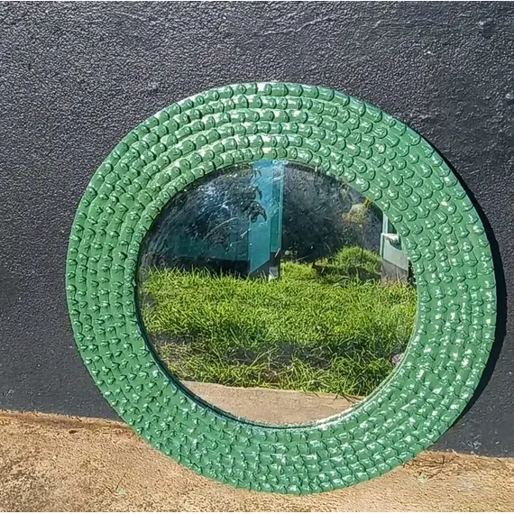 A wall mirror made in the Kingdom of Eswatini made of natural elements pine cones, by a disabled handsome young man... a product born in adversityÂ