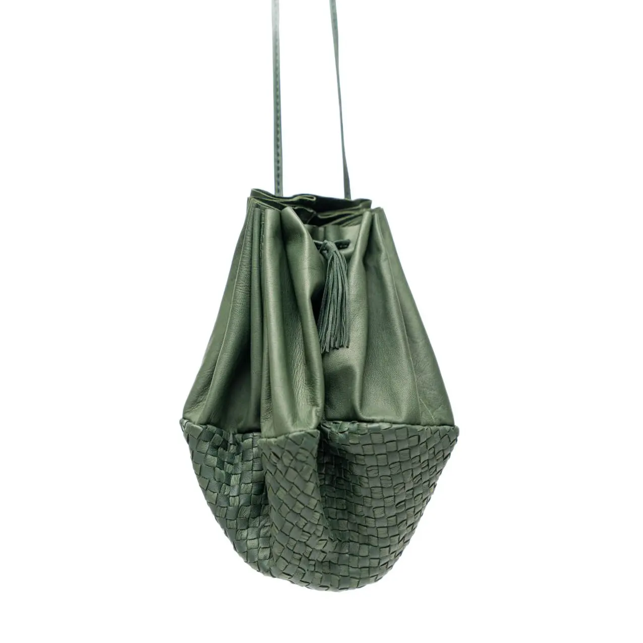 Spacious & Functional: Large-capacity tote that easily holds daily essentials for travel, work, or casual use.Convertible Design: Can be worn as a shoulder bag or crossbody satchel for versatile styling options.Handmade Woven Detailing: Features delicate woven accents that add a unique, artisanal flair.Premium Leather Construction: Crafted from soft, high-quality leather for a luxurious feel and durability.Custom Color Choices: Choose from chic shades including Black, Red, Desert Sun, Magenta Pink, Blue, and Chive to suit your style.