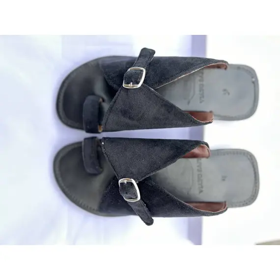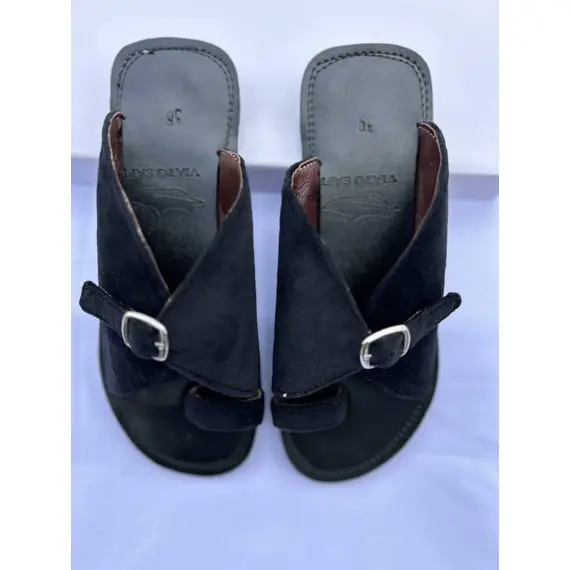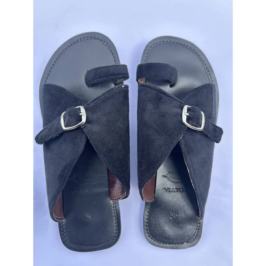 VIATO SAFI Unisex Black Leather Open Sandals with Forefoot Strap – Relaxed Summer Style
