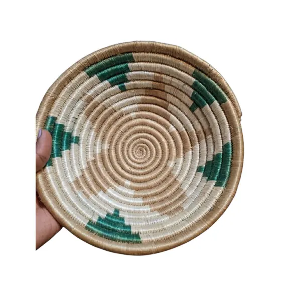 MUNYANA Small Round Handknitted Wicker Basket – Brown & Green Mix Rattan Serving and Organizer Tray