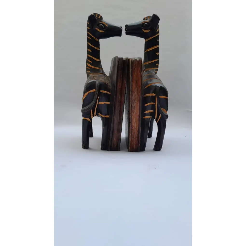 MATTHEWS Artisan Giraffe Wood Bookends | Decorative Shelf Organizer