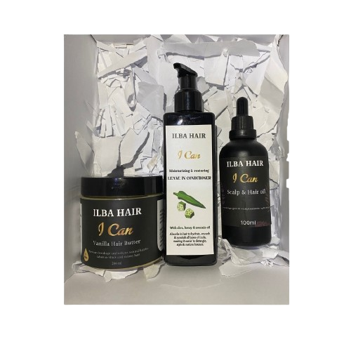 1 ILBA HAIR “I Can” Leave-In Conditioner – Infused with okra, honey, and avocado oil to gently detangle and deeply hydrate hair.
