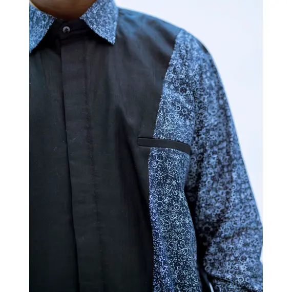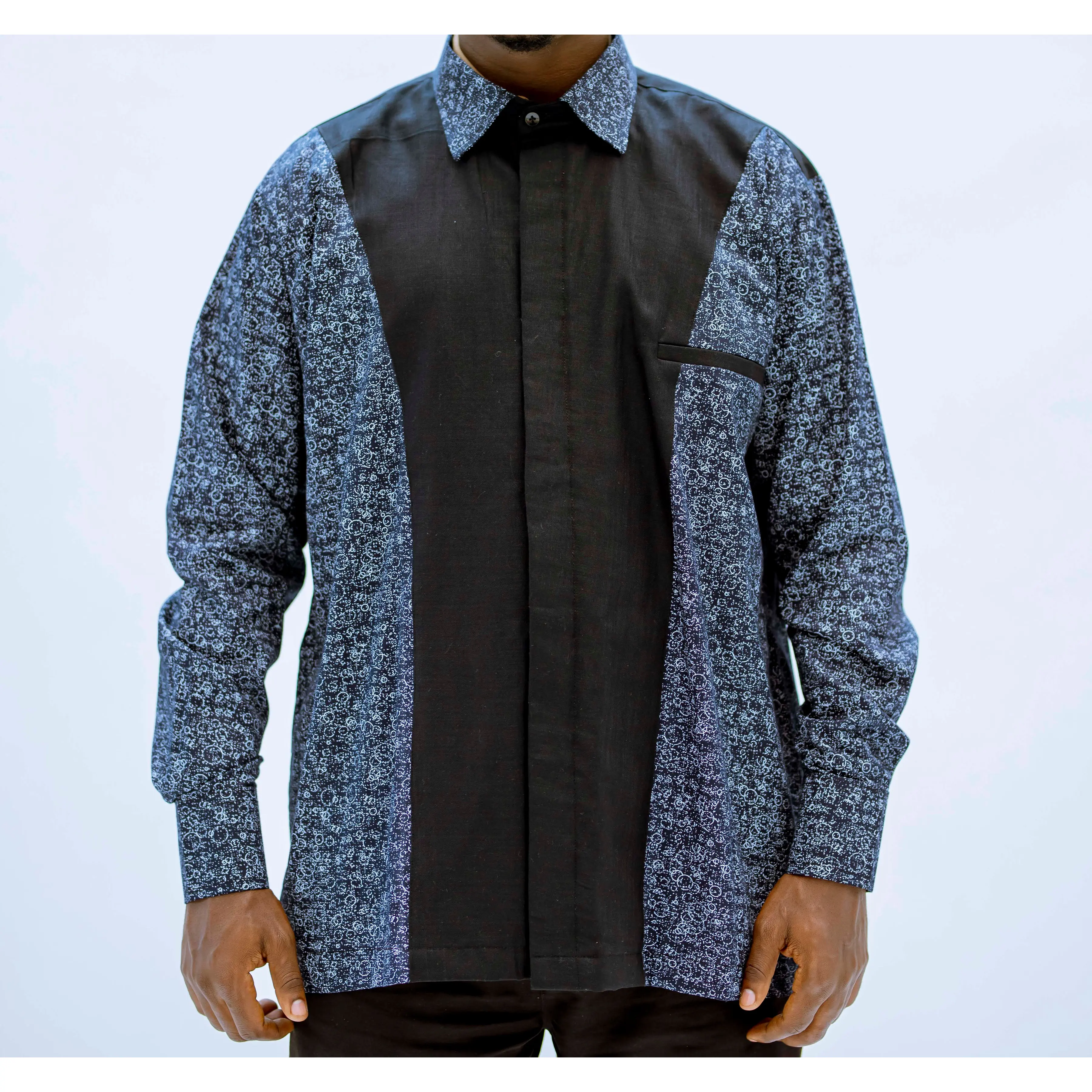 BYOSE IWACU Dark Blue Printed Men's Button-Down Shirt – Long Sleeve, Vintage & Office-Ready
