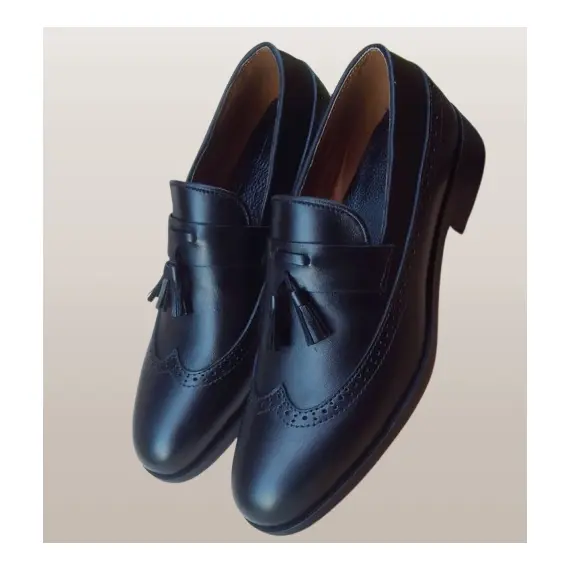 Minimum quantity for "Classic Leather Tassel Loafers – Handmade Dress Shoes for Men with Brogue Detailling" is 1.