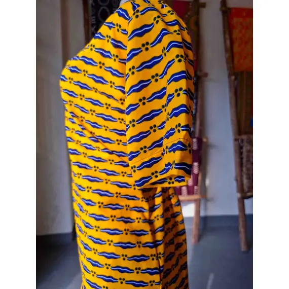 This effortlessly stylish shirt dress is designed with short sleeves and practical side pockets, making it a perfect choice for both casual and semi-formal wear. Made from lightweight, breathable fabric, it offers all-day comfort while maintaining a chic, tailored silhouette. Proudly made in Rwanda, this dress is ideal for work, weekend outings, or relaxed days with a fashionable edge.